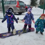 Savukārt grupas “Burtiņi” skolotāja Arnita Freiberga atzīst, ka: “Bērni bija priecīgi par skolotāja Renāra stāstījumu par sporta veidiem, kuros piedalās dzīvnieki – suņi, zirgi un kamieļi. Ļoti patika veidot sirdi no aukliņām sniegā un apgulties, lai sajustu sniegu. Interesanti bija iekāpt lielajos slēpju zābakos un nostāties uz slēpēm. Lielāko prieku sagādāja tas, ka visi 13 audzēkņi kopīgi varēja plastmasas pannā pa sniegu izvizināt auklīti Sintiju! Jā, sporta diena svaigā gaisā ienesa daudz prieka un veselības Burtiņu ikdienā!”