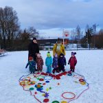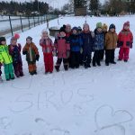 Skolotāja Marta Dreimane: “Grupiņas “Bitītes” bērni ļoti aktīvi un ar lielu aizrautību piedalījās sporta skolotāja Renāra sagatavotajās sportiskajās stacijās. Bērniem ļoti patika šķēršļu trase. Zinātkāri tika apskatīts ziemas sporta inventārs: slidas, slēpes, hokeja nūja, snovborda dēlis un ķivere. Sporta skolotājs bērnus iepazīstināja arī ar interesantiem sporta veidiem, kuros ir iesaistīti dažādi dzīvnieki – suņi, zirgi. Lielu interesi bērnos radīja karte, kurā bija atzīmēti kontrolpunkti un kuri bija jāatrod. Katrā kontrolpunktā bija noslēpies kāds burts. Tos kopā saliekot izveidojās vārds – sirds. Bērniem bija iespēja arī izveidot savu sirdi, izmantojot sporta inventāru. Bērnu sejās varēja novērot smaidu un ieinteresētību veicamajos uzdevumos!”