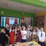 14.novembrī pie 2.b un 2.c klases viesojās Annikas Bantersones tētis virsseržants Kristaps Bantersons. Vidzemes 2. Zemessardzes brigādes 25.Kaujas atbalsta bataljona, Artilērijas baterijas, 1.vada galvenais speciālists. Viņš pastāstīja bērniem par karavīra profesiju, demonstrēja aprīkojumu, ļāva arī pašiem izmēģināt. Bērni labprāt iesaistījās sarunā par Latvijas vēsturi. Veica uzdevumu – no atsevišķiem vārdiem salikt mūsu valsts himnu. Pēc tam to visi kopā nodziedāja.