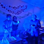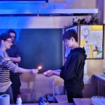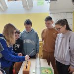 Tikpat aizraujoši pagāja nodarbība ķīmijas eksperimentu darbnīcā, ko vadīja Simona Sarkangalve, Elvis Leimanis (12. klase), Kristers Purviņš (11.klase), Roberts Medejsis (10. klase) un ķīmijas skolotājs Jānis Celmiņš.