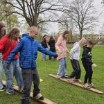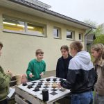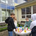 Skolēni skolas pagalmā spēlēja galda spēles un piedalījās stafetēs, savstarpēji saliedējošā gaisotnē izbaudot kustību prieku svaigā gaisā un gūstot labu enerģijas lādiņu smadzenēm.