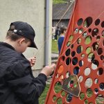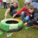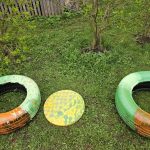 Īsts radošais piedzīvojums bija arī sociālo zinību, kultūras un mākslas skolotājas Ilvas Dūmiņas vadītā riepu un soliņu apgleznošanas darbnīca.