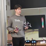 Valmieras Jaunatnes centra “Vinda” Dronu skolas pārstāvji Pēteris Dūnis un Dāvis Žuravļevs skolēnus iepazīstināja ar sporta dronu pasauli un interešu izglītības programmu, kurā aizraušanās ar tehnoloģijām kļūst par piedzīvojumu.