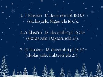 Dedziet gaišu uguntiņu Ziemassvētku vakarā, Lai dieniņas baltas nāca Visa gada garumā! Aicinām Smiltenes vidusskolas skolēnu vecākus uz Ziemassvētku pasākumiem! 1. – 3. klašu Ziemassvētku eglīte notiks 17. decembrī plkst. 16.00 skolas zā..