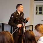 Skolēni tika iepazīstināti ar galvenajiem Aizsardzības ministrijas un NBS uzdevumiem, reģionālo ģeopolitisko situāciju un iespējamiem apdraudējumiem valsts drošībai. A.Baranovskis un E. Šmits informēja par to, kā ikviens no mums var palīdzēt krīzes situācijās, kaut vai parūpējoties par sevi, saviem tuvākajiem, atbalstot vietējo kopienu daudzviet minētajās pirmajās 36 stundās.