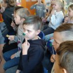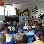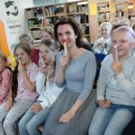 Evija Gulbe pastāstīja, kā viņa raksta grāmatas, kā top ilustrācijas. Bērniem bija jāatmin, kādas atšķirības ir abiem žurkulēniem, kā viņus nesajaukt. Izrādās, ka uzmanība jāpievērš ne tikai krekliņu krāsai, bet arī zobiem! Bērni varēja paši iejusties dzīvnieciņu tēlā, izveidojot žurku deguntiņus!